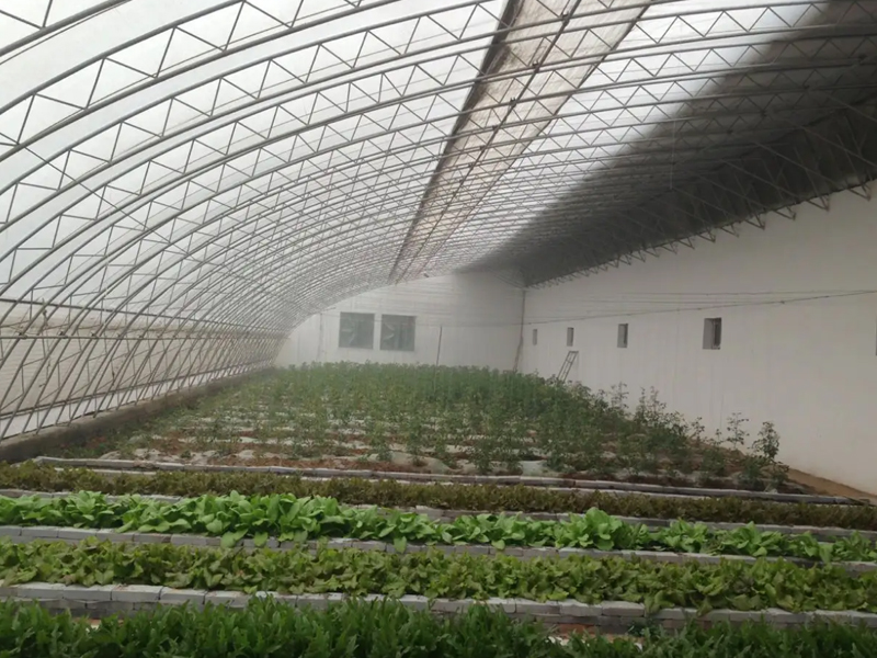 日光溫室是采用較簡易的設施,充分利用太陽能,在寒冷地區(qū)一般不加溫進行蔬菜越冬栽培,而生產新鮮蔬菜的栽培設施日光溫室具有鮮明的中國特色。是我國獨有的設施。日光溫室的結構各地不盡相同,分類方法也比較多。按墻體材料分主要有干打壘土溫室,磚石結構溫室,復合結構溫室等。按后屋面長度分,有長后坡溫室和短后坡溫室;按前屋面形式分,有二折式,三折式、拱圓式、微拱式等。按結構分,有竹木結構、鋼木結構、鋼筋混凝土結構、全鋼結構、全鋼筋混凝土結構、懸索結構,熱鍍鋅鋼管裝配結構。