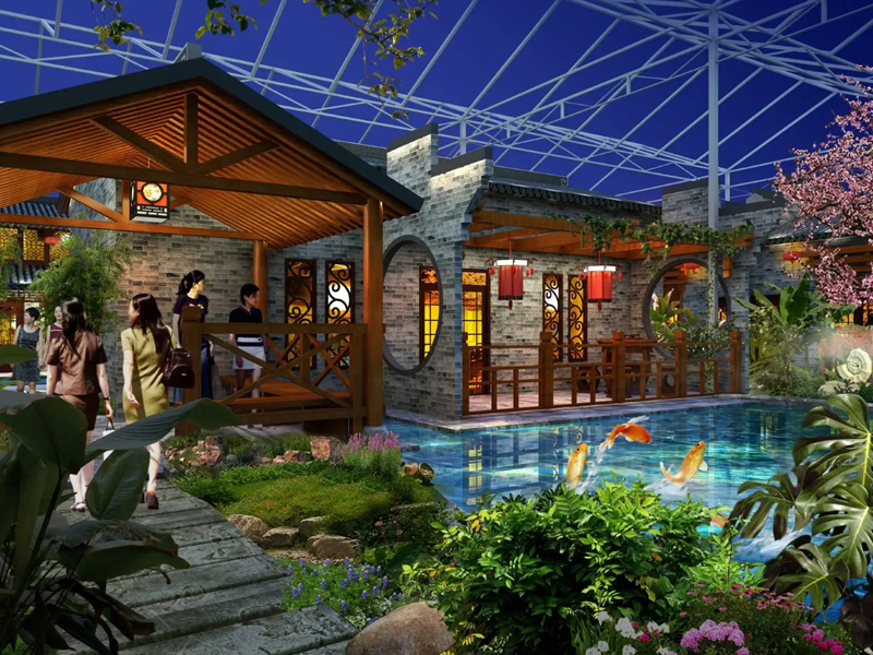 利用溫室創(chuàng)造出適合動(dòng)植物生長的環(huán)境,在生態(tài)園內(nèi)展現(xiàn)各個(gè)主題的自然物種群落,讓人們無需遠(yuǎn)足便能領(lǐng)略豐富的自然環(huán)境。在生態(tài)園中,創(chuàng)造異域風(fēng)情,讓人們迅速遠(yuǎn)離城市喧囂,在熱帶雨林、南國風(fēng)情、江南水鄉(xiāng)中,享受著美食的同時(shí)享受著自然帶來的愉悅。